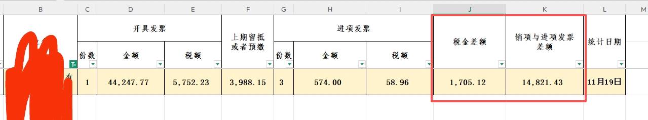 你当前的销项与进项发票差额为 14,821.43元,即销项税额比进项税额多出这么多。 进项发票税额为 58.96 元,销项税额为 5,752.23 元,差额较大。 建议检查是否有未录入的进项发票或是否漏抵扣。