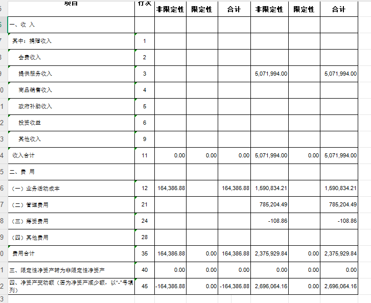 在业务活动表中,“净资产变动额”为2,696,064.16元(即269.6万元),这是本年净资产的变动金额;而资产负债表中的净资产合计为2,576,275.16元(即250.3万元),这个是期末净资产总额。