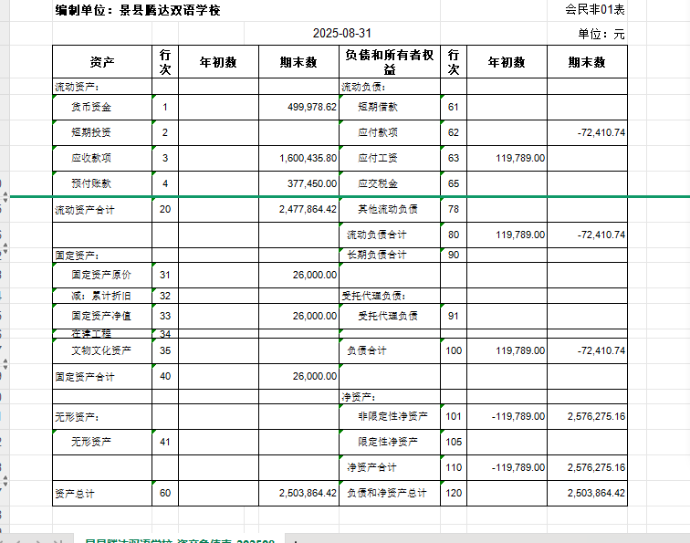 - 若年初净资产为 -119,789.00 元,则: