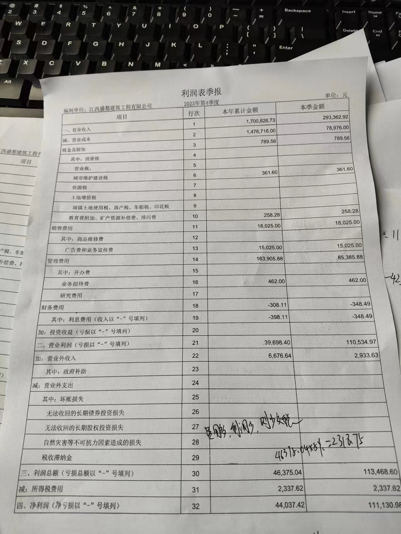 原先23年利润总额是46752.32,12月没有计提12月工会经费、环保税...