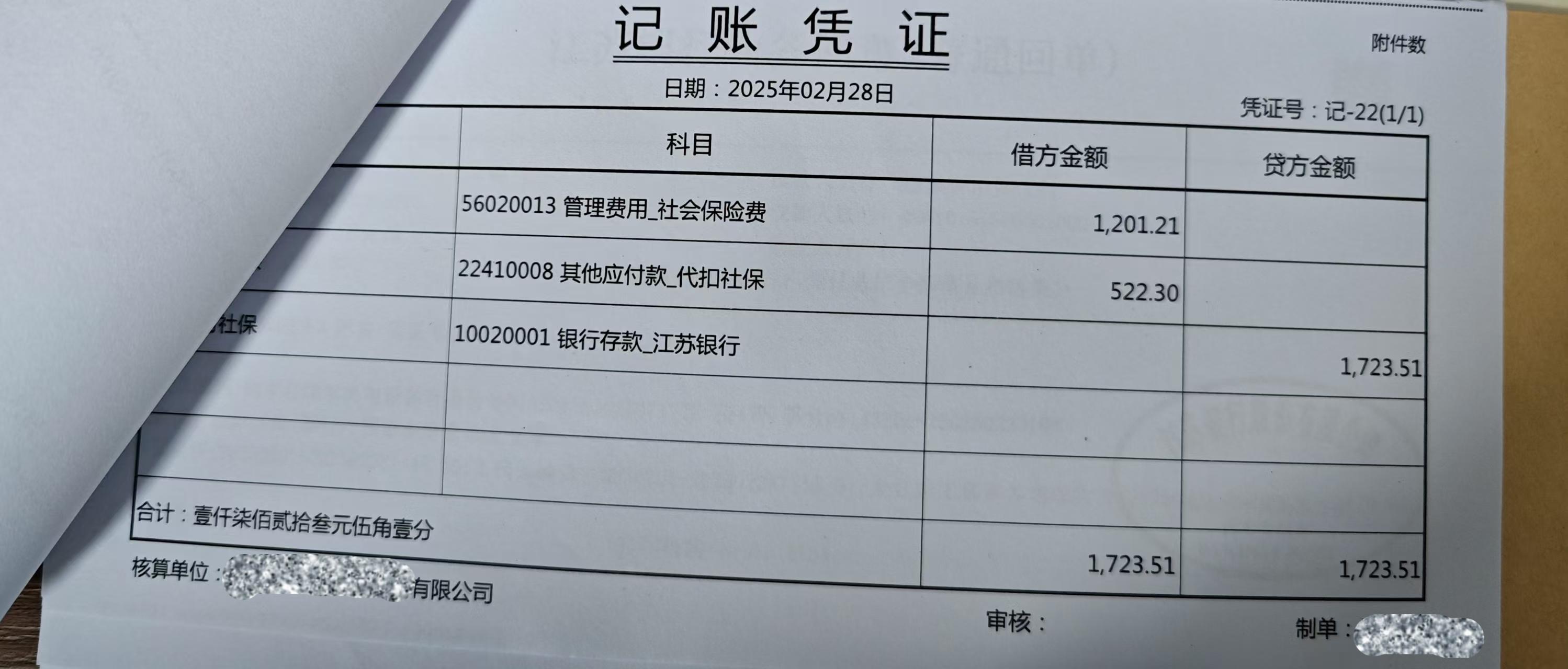 根据这张凭证是不是说明这里的社保是先发的工资后申报的呀?