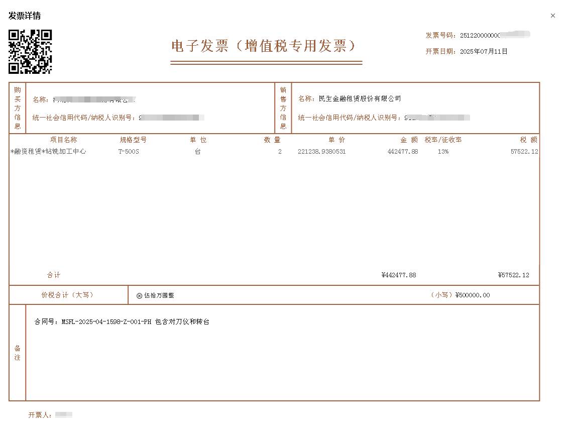 是的,该发票应记为固定资产。分录如下: 1. 借:固定资产 442,477.88 借:应交税费 - 应交增值税(进项税额)57,522.12 贷:银行存款 500,000.00 这是基于发票金额进行的初始记录。