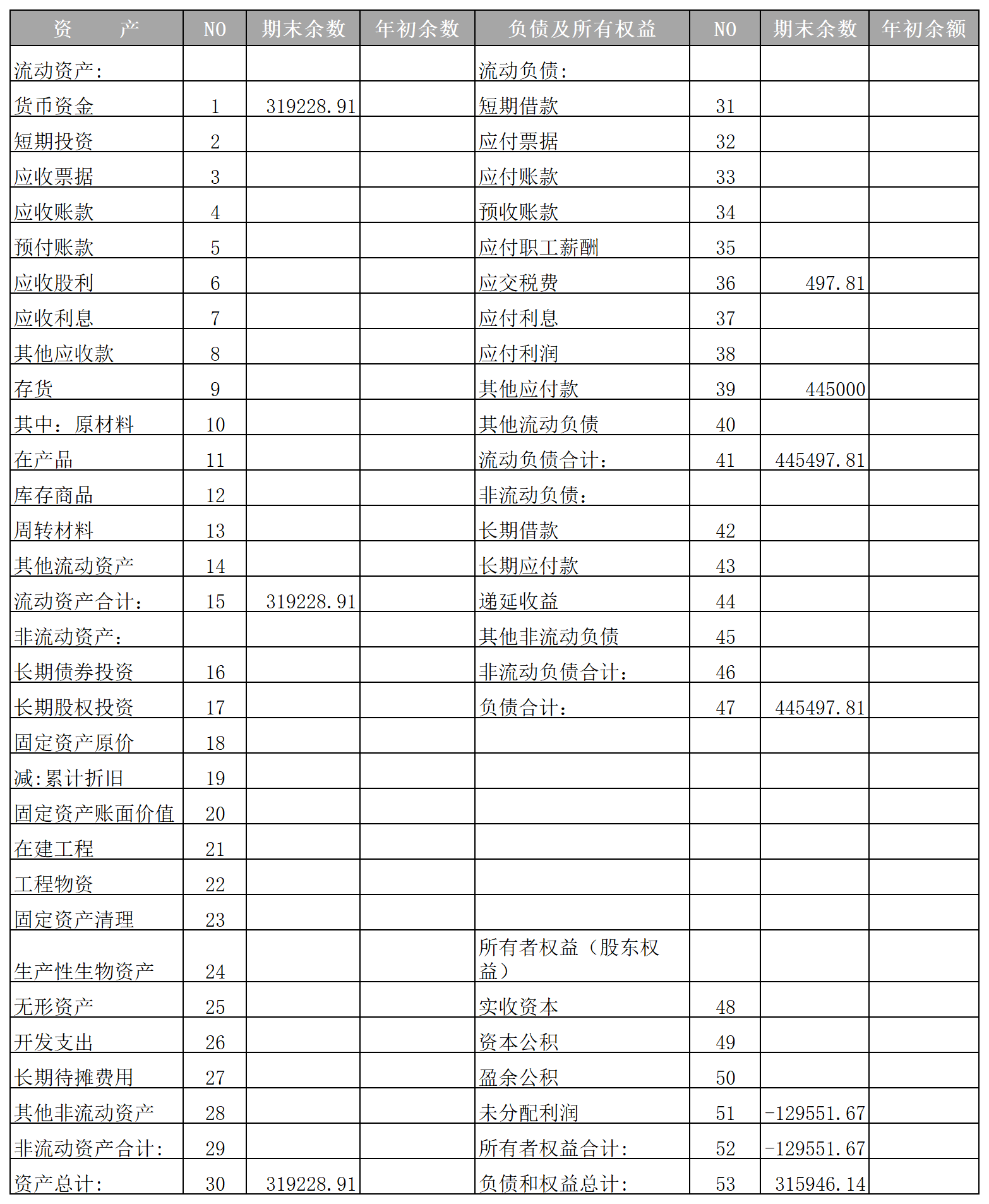 → 资产 ≠ 负债+权益,差额 = 445,497.81 - 319,228.91 = 126,268.89