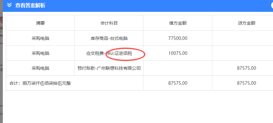 在会计科目设置上,企业通常使用“应交税费——待认证进项税”(不含“额”),但部分题目为强调金额属性会加“额”。