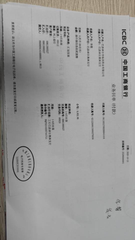 这是一张工商银行的付款回单,显示企业向供应商支付货款。