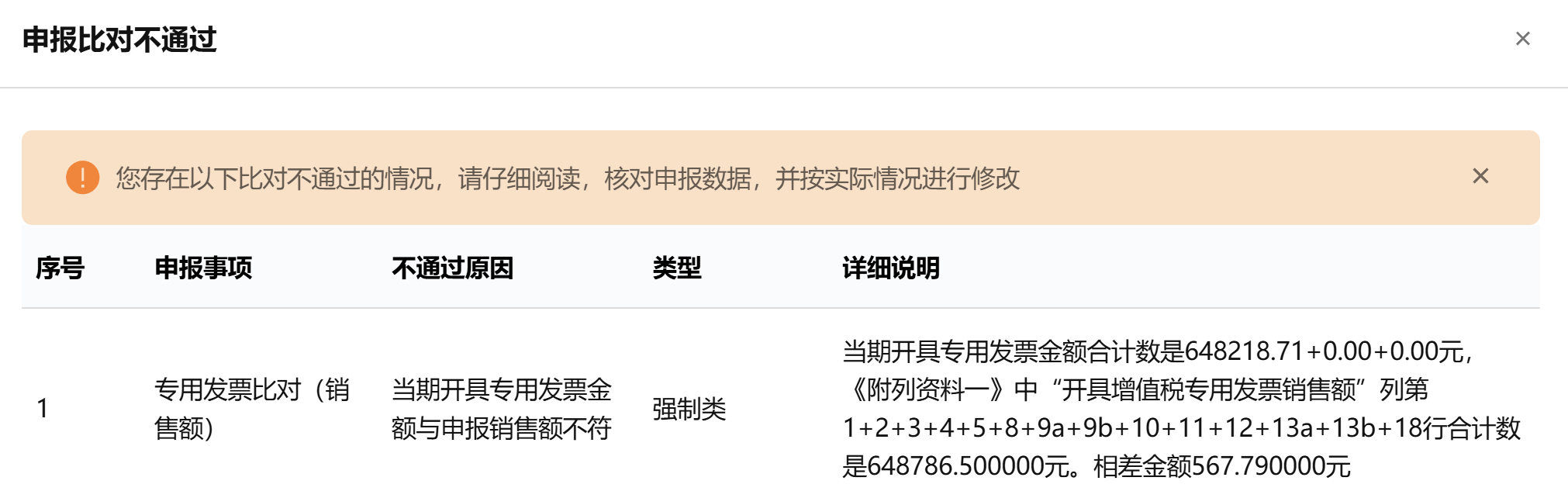 您好,我刚接手的账,上个月财务少记了两笔收入560元,但是发票开具了,她按照自己做的账做的增值税纳税申报,我这个月做纳税申报时把这两笔收入加上了,账里面也加了这个,否则账面往来就不对了;但是增值税申报时系统提示“当期开具专用发票金额与申报销售额不符” ,怎么处理?谢谢!