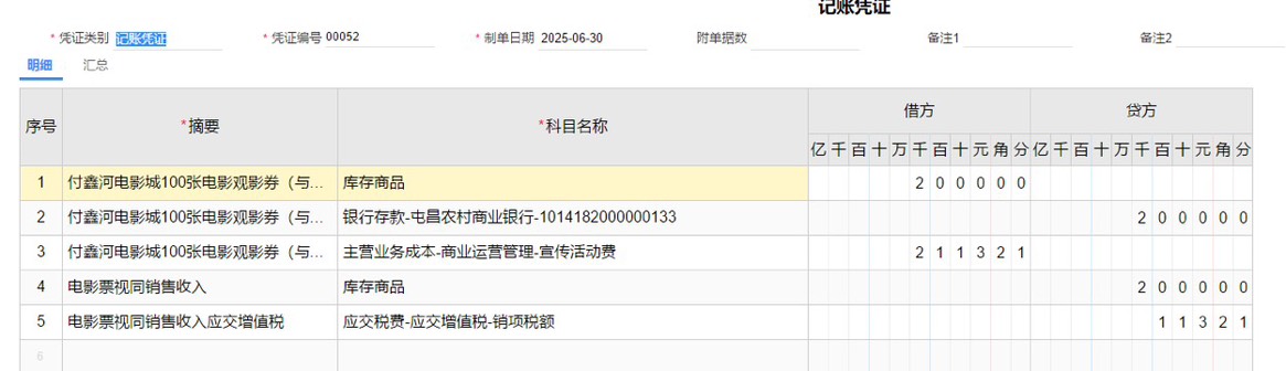2. 发放电影票作为活动礼品:视同销售,应确认收入并结转成本。