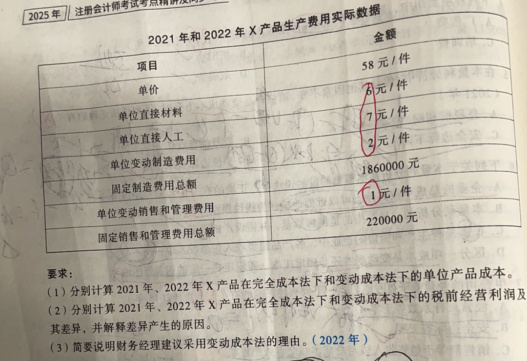 变动成本法下的单位产品成本仅包括变动生产成本,即单位直接材料、单位直接人工和单位变动制造费用。单位变动销售和管理费用不属于生产成本,因此不计入变动成本法下的单位产品成本。这是变动成本法的基本原则。