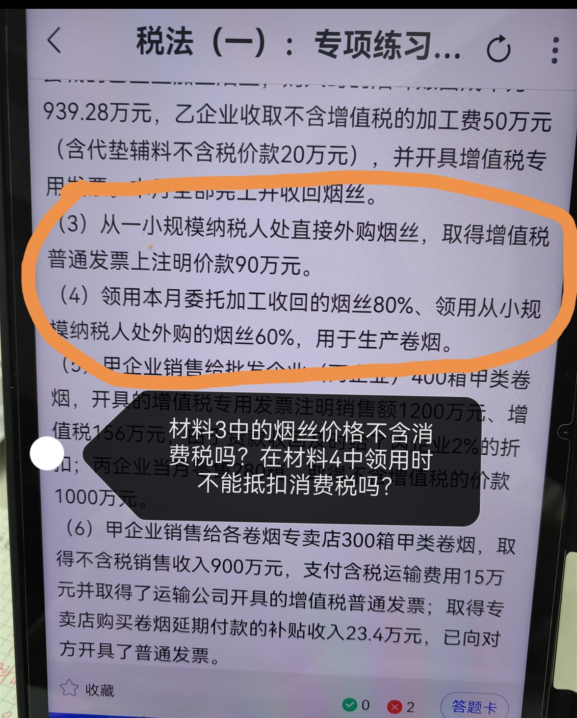 你好,不能抵扣的。材料3外购烟丝含消费税,外购应税消费品用于连续生产应税消费品(如用烟丝生产卷烟),准予按“生产领用量”抵扣已纳消费税,但需取得专票,取得的是普票不符合要求