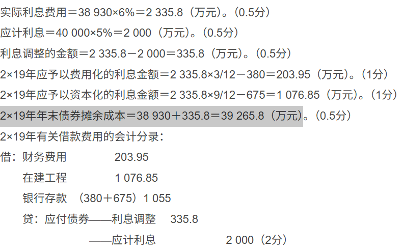 因此,2×19年末债券摊余成本 = 38,930 + 335.8 = 39,265.8万元,正确。