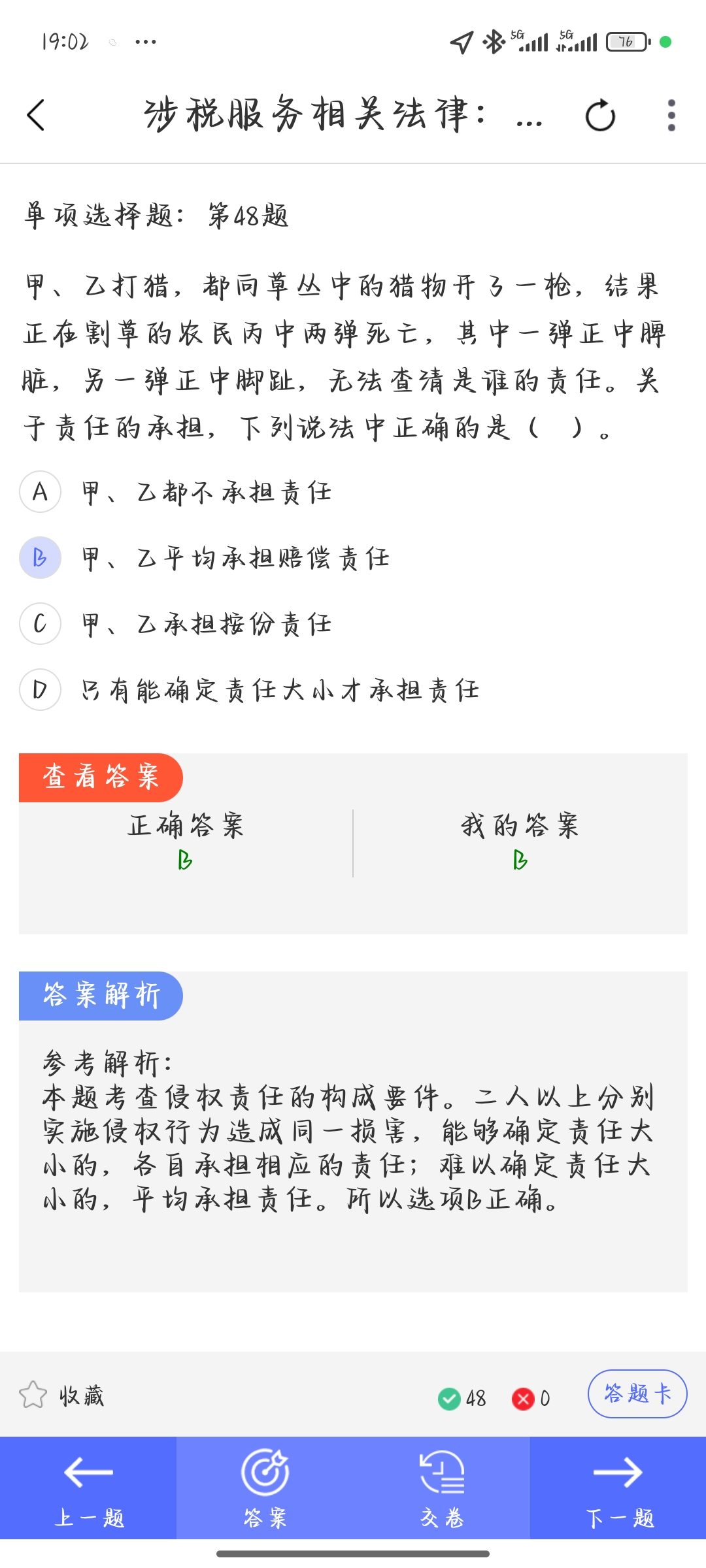 在侵权责任中,依据《中华人民共和国民法典》相关规定,二人以上分别实施侵权行为造成同一损害, 能够确定责任大小的,各自承担相应的责任;难以确定责任大小的,平均承担责任。本题中甲、乙打猎开枪的行为,都有可能导致丙死亡,且无法查清是谁的子弹直接导致致命结果,属于难以确定责任大小的情形,所以甲、乙平均承担赔偿责任 。这一规定主要是从填补受害人损失的角度出发,尽可能保障受害人能够获得赔偿。