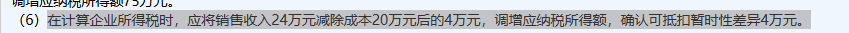 - 税法要求确认24万元收入,同时允许扣除成本20万元;