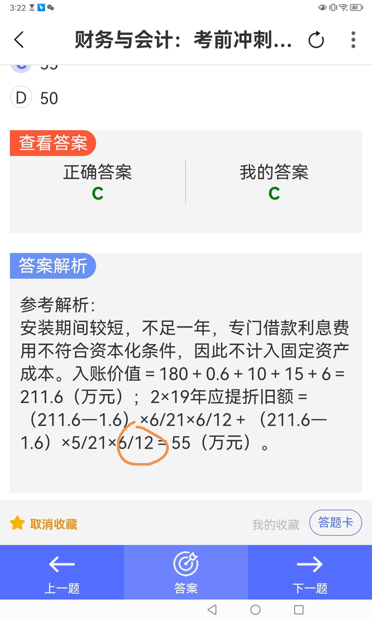 但解析算55,说明其将2×18年未提完的半年折旧和2×19年折旧合并计算,这是错误的。
