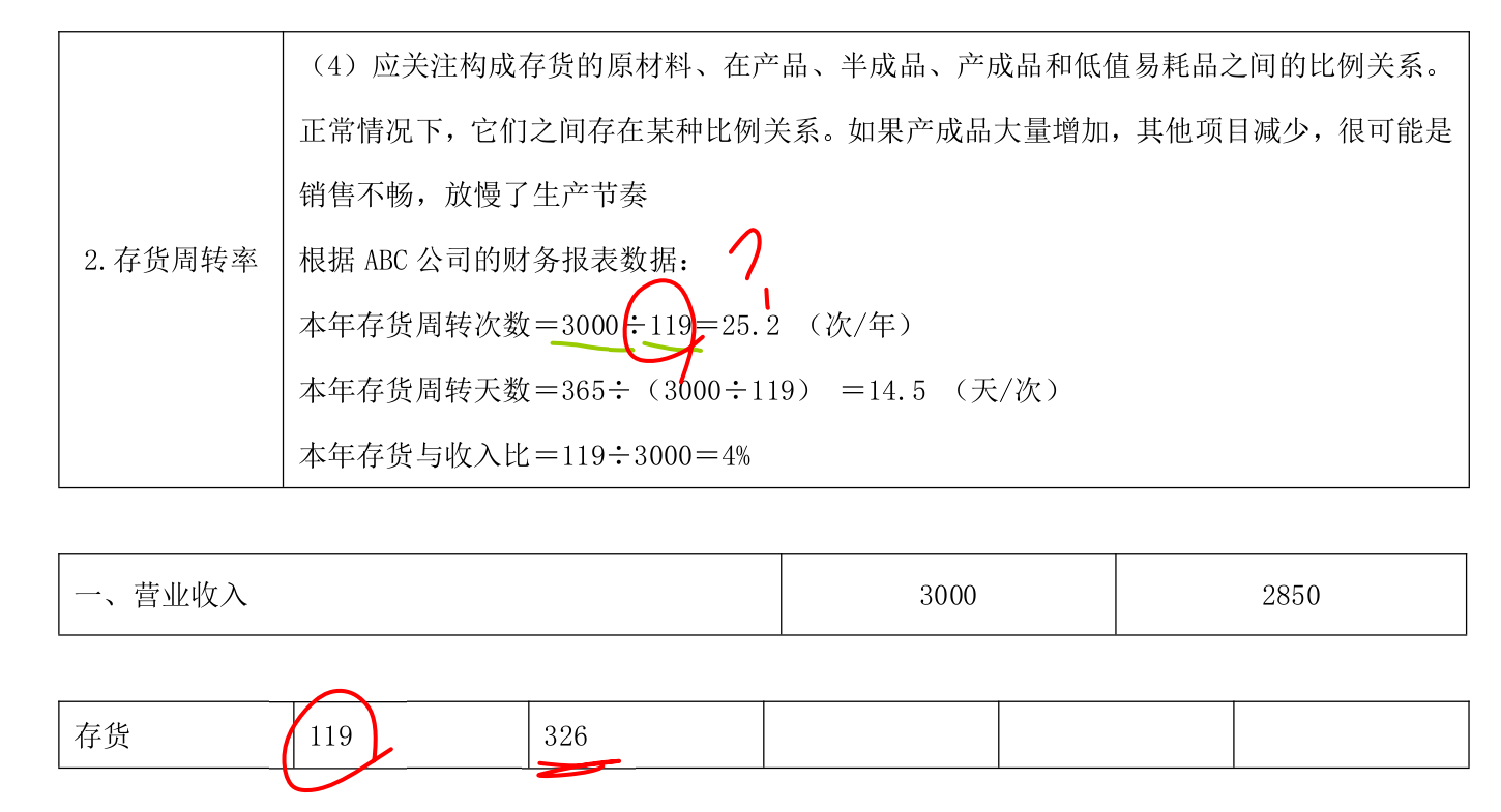但图中直接用“119”作为分母,可能是简化处理或题目假设为期末存货等于平均存货,即未提供期初数据,只能用期末数代替。这在实际分析中不够严谨,但教学场景中常作简化。