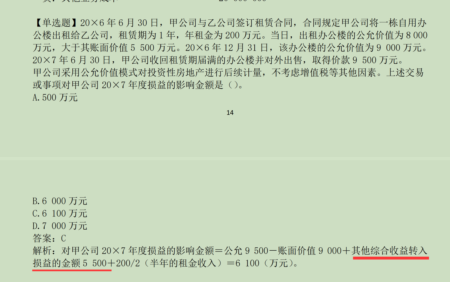 20×6年6月30日将自用转投资性房地产时,公允价值8000万元大于账面价值的差额5500万元计入了其他综合收益。处置时这部分要转入当期损益,所以加5500万元。