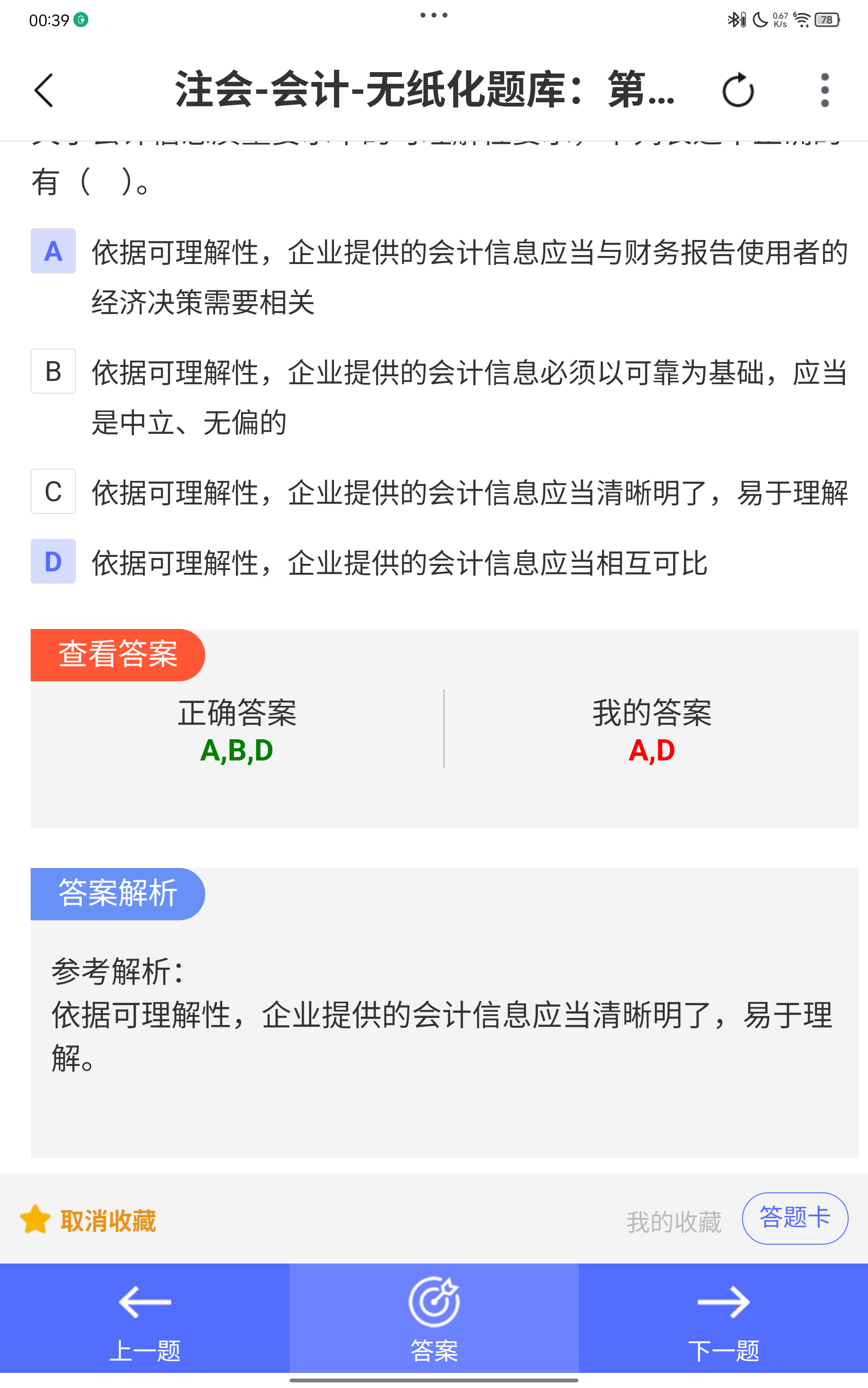 C选项是正确的。可理解性要求会计信息清晰明了、易于理解,这是其核心含义,因此C正确。你漏选了C,但标准答案包含A、B、D,说明题目可能有误或出题逻辑有问题。实际上,B选项混淆了“可理解性”与“可靠性”——可靠性和中立性属于可靠性原则,不是可理解性的内容,所以B错误。