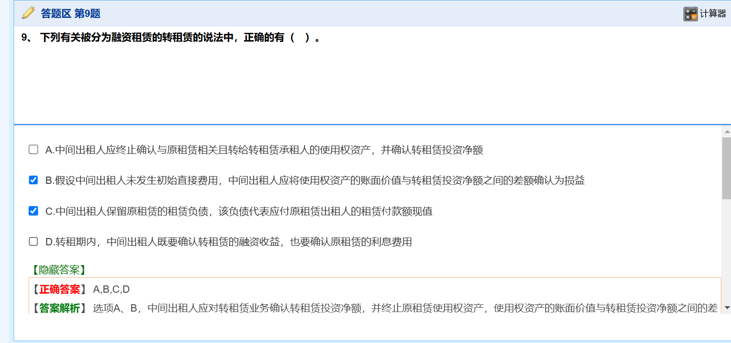 - 大白话:中间出租人只是把资产转租出去,并没有免除自己对原出租人的付款义务——还是要按期给原出租人付租金,所以账上的租赁负债(欠原出租人的钱,按现值算)要保留,不能注销。
