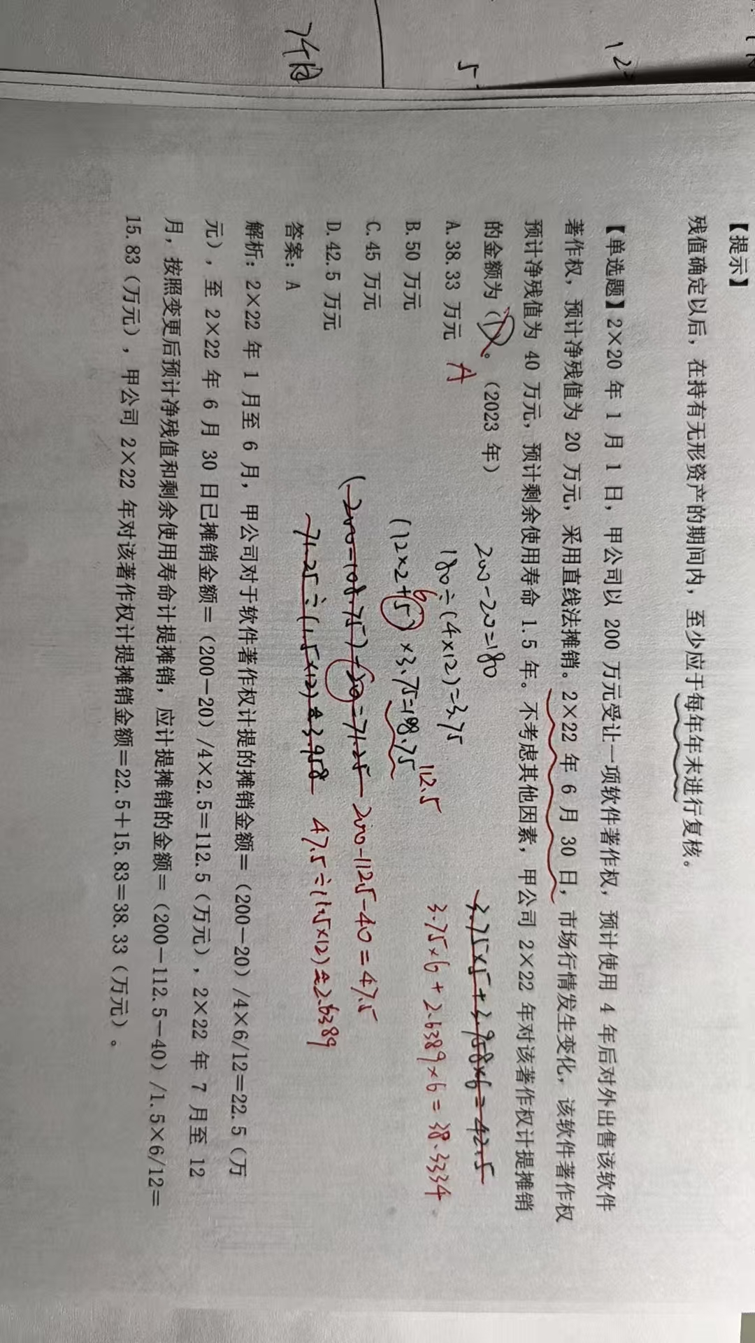 - 7月开始,才按照新的估计(新净残值、新寿命)来计算摊销。