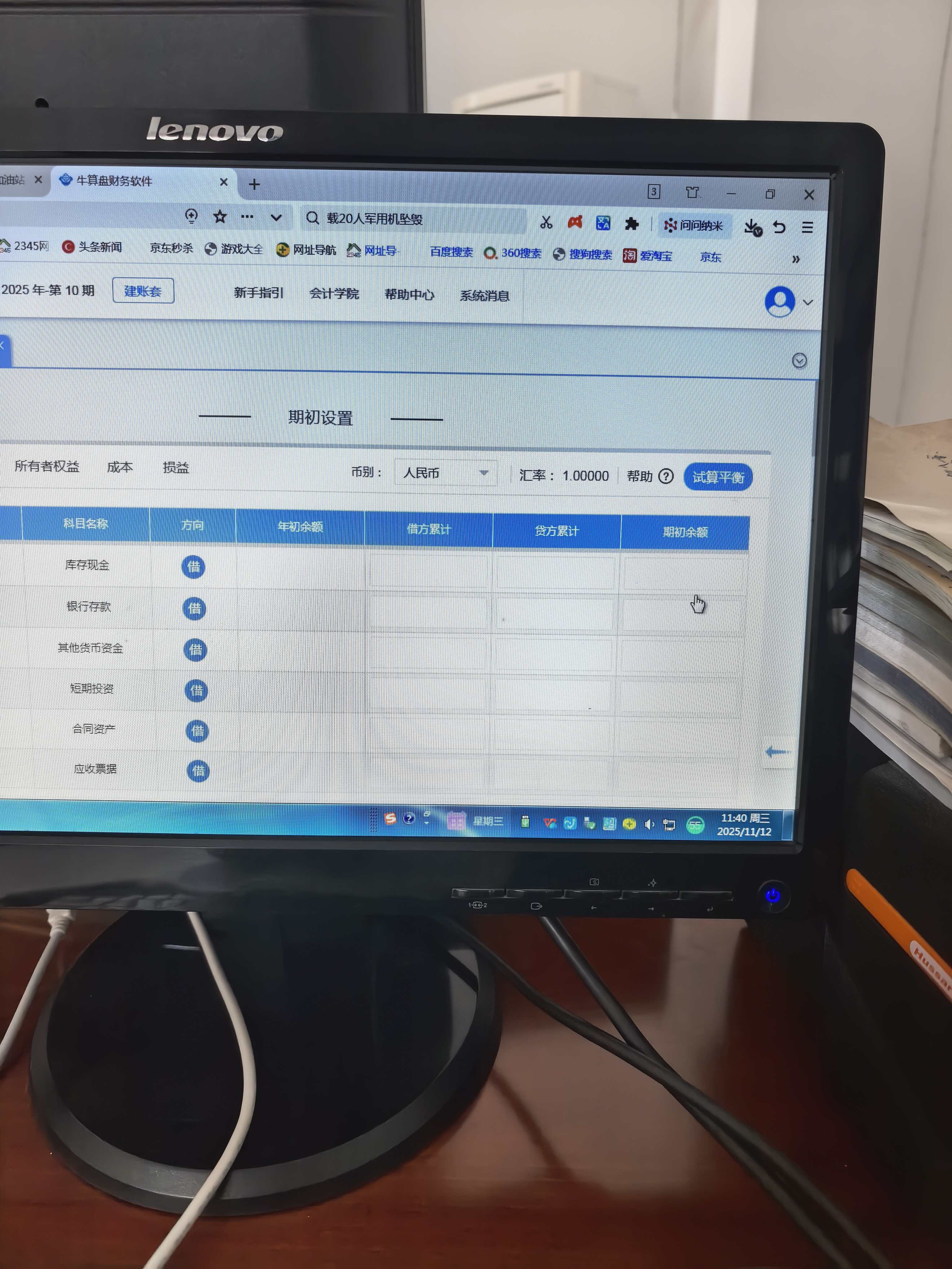 如果账套启用日期不是年初,需填写“期初余额”;若为年初,则“期初余额”=“年初余额”。