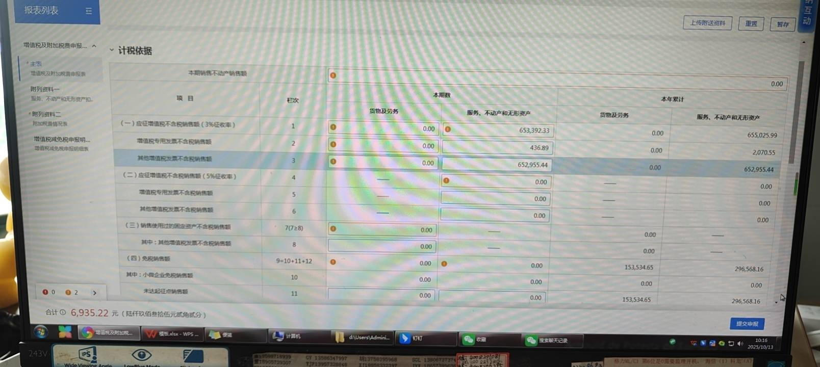 2. 第3栏“其他增值税发票不含税销售额”:应填入普票金额 652,955.44(含1%税率的不含税额),不能为0。