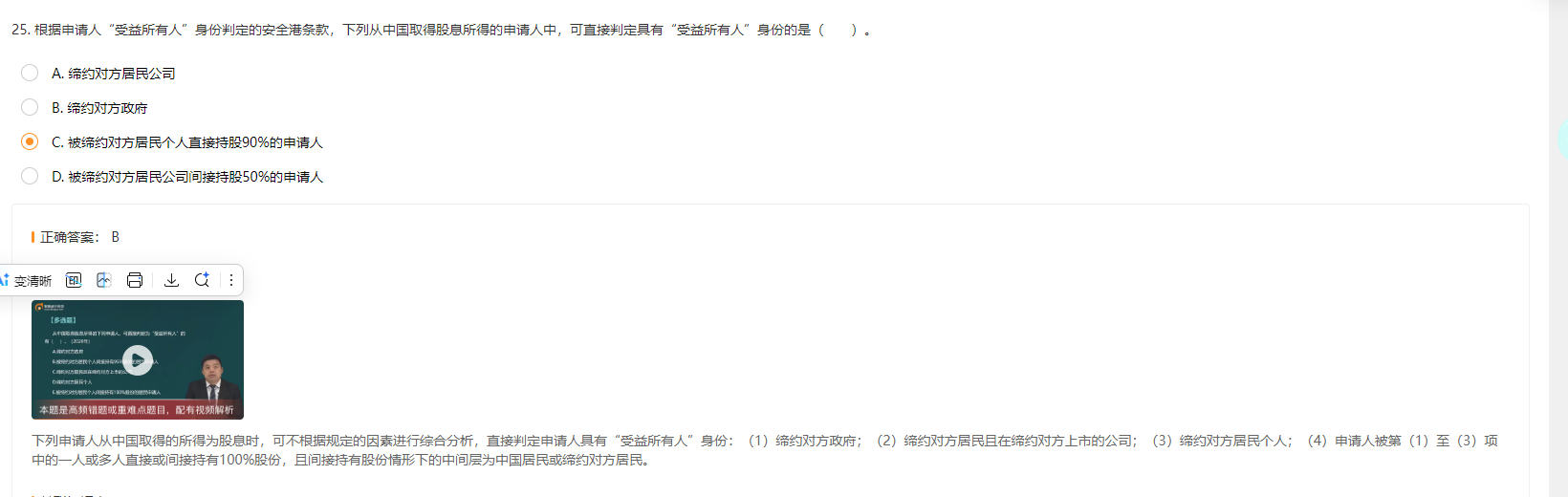 题目问的是:哪些申请人可直接判定为“受益所有人”,无需复杂分析。