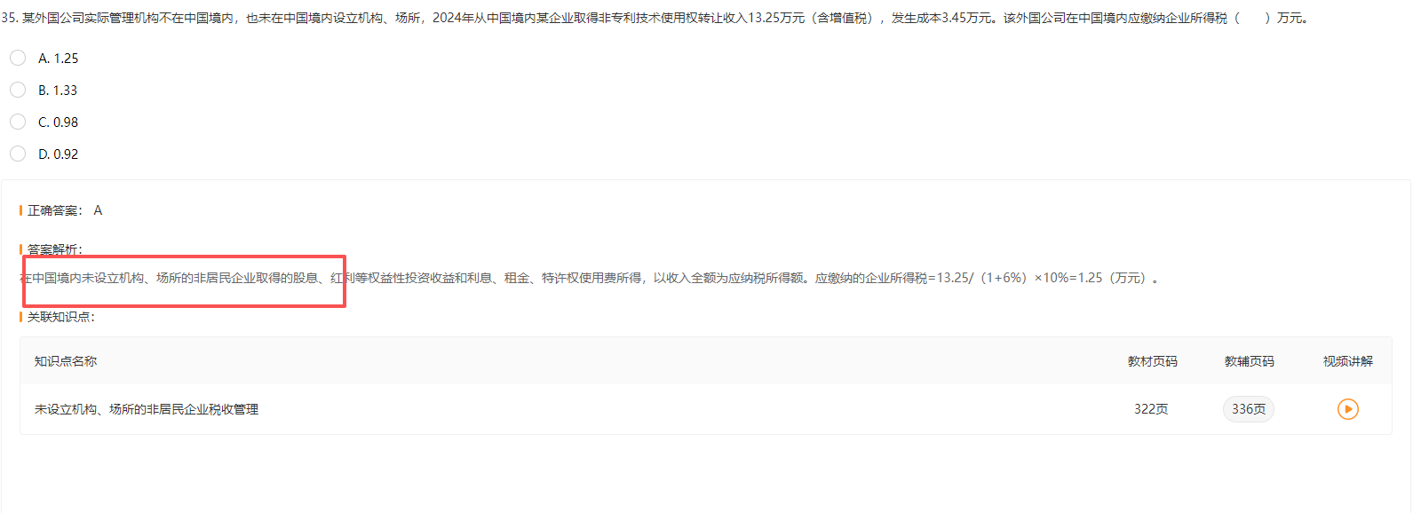 如果外国公司在境内设立机构、场所,则其转让非专利技术使用权的收入,可以扣除成本3.45万元后计算应纳税所得额。 但本题中公司未设立机构、场所,因此不适用成本扣除,应以收入全额为应纳税所得额。 所以,只有在设立机构、场所的情况下,成本才可扣除。