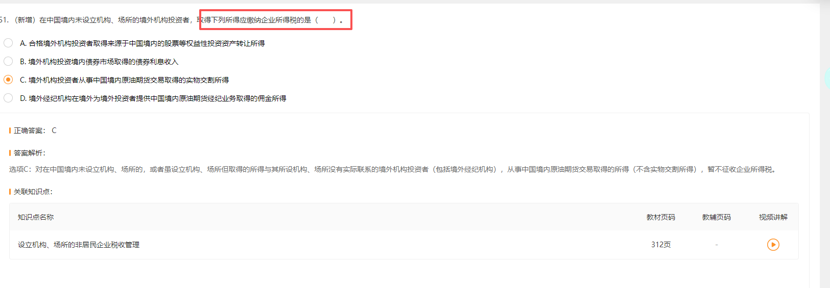 但根据你提供的解析内容,它明确说“从事……实物交割所得,暂不征税”,那么它就不应是“应缴税”的项目。