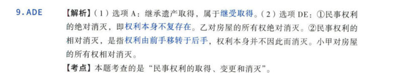 - D错误:小甲的物权是通过转让相对消灭,不是绝对消灭。