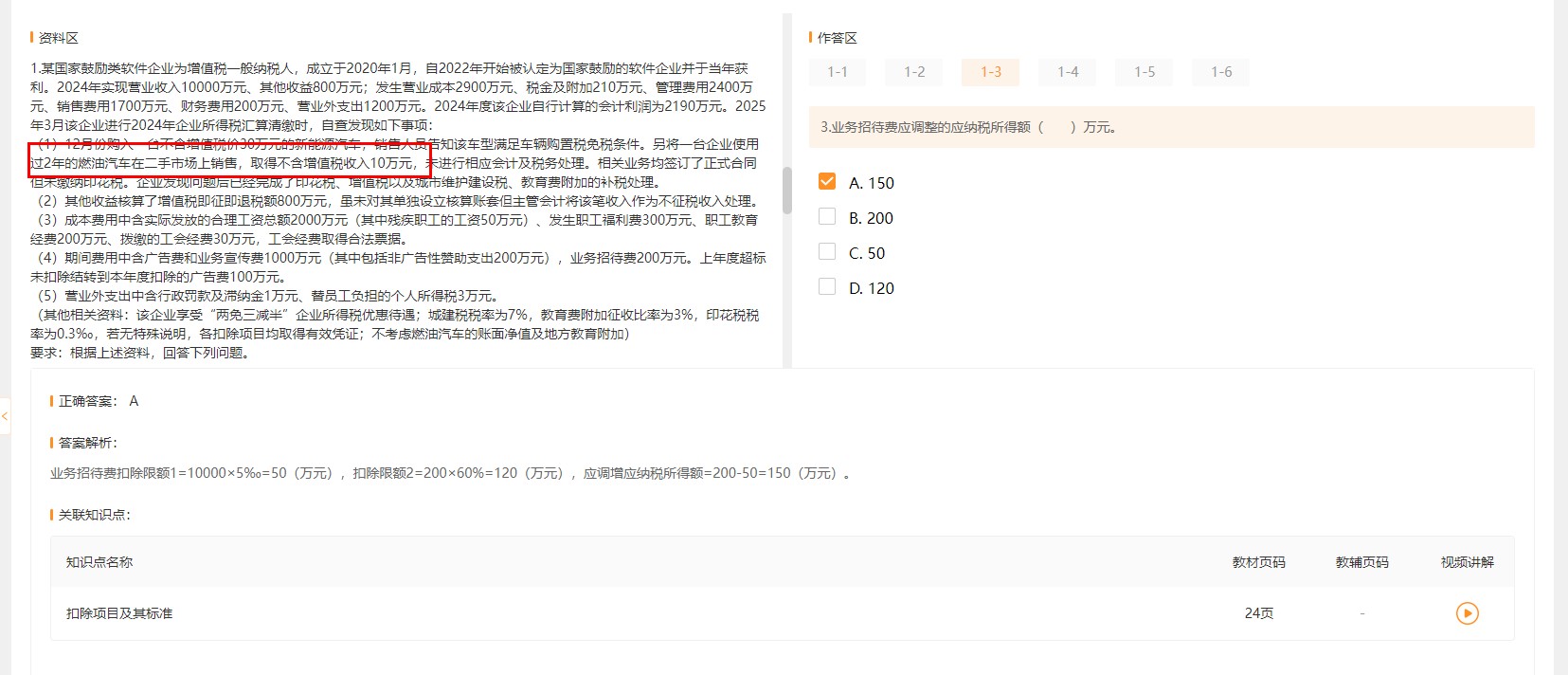 题目中“销售二手燃油汽车”取得的10万元收入,虽已确认为其他收益,但不属于增值税应税收入(因未开具发票、未做会计处理),也未纳入“营业收入”范畴,因此不计入业务招待费的扣除基数。