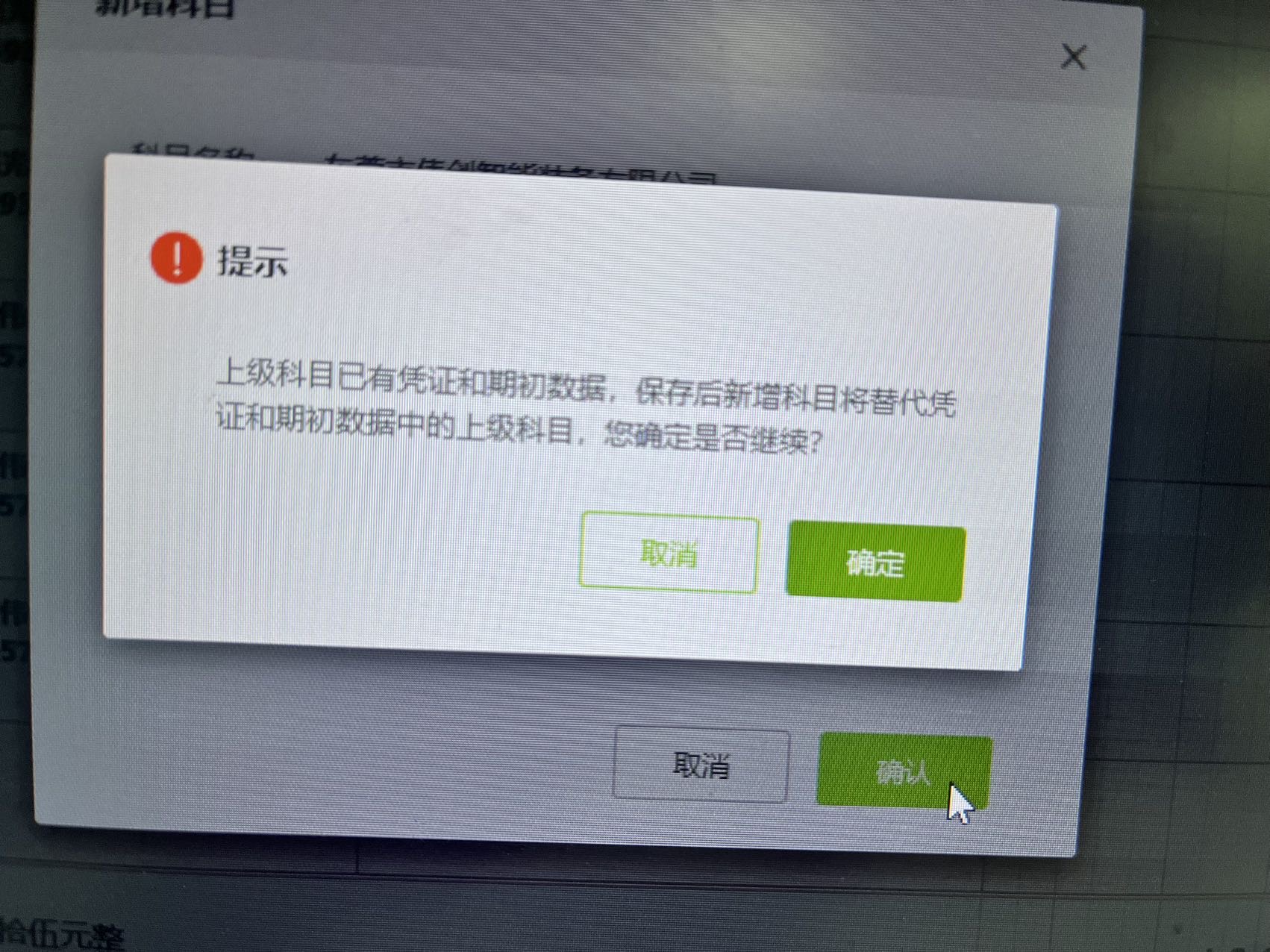 此时新增的明细科目会继承并替代原上级科目的数据,后续所有相关凭证和余额将归入新科目。