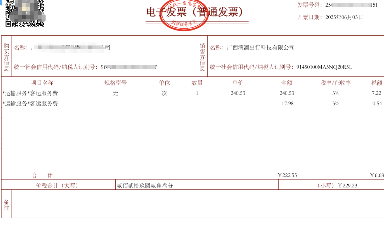 说明:负数行-17.98为冲减费用或退款,已体现在合计金额中,无需单独做分录。
