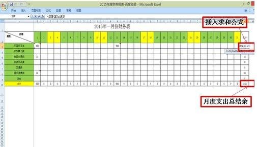 3、然后,做出每个月的财务报表,分类与总报表要一致,注意要插入求和公式,便于记录;