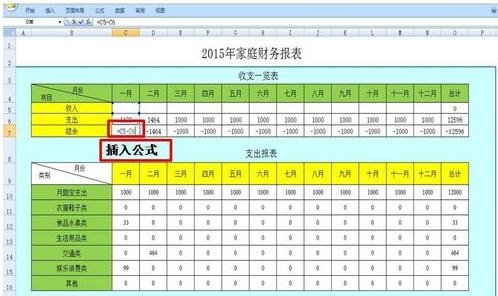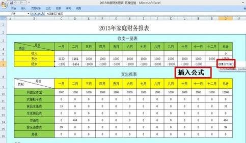 6、在结余项插入公式,一般用“收入-支出”即可,较为简单;