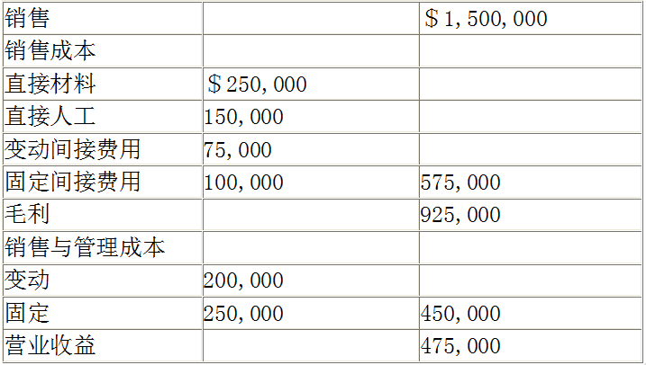 Barnes公司生产滑板,并正在准备明年的预算。当年的模拟损益表如下公司的管理层预计明年的销售额增长10%,变动成本增长12%,固定费用增长$45,000。明年的盈亏平衡点是()