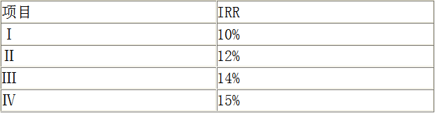 Brown公司使用内部回报率(IRR)法来评估资本项目。Brown正在考虑4个独立的项目,分别有以下的IRR