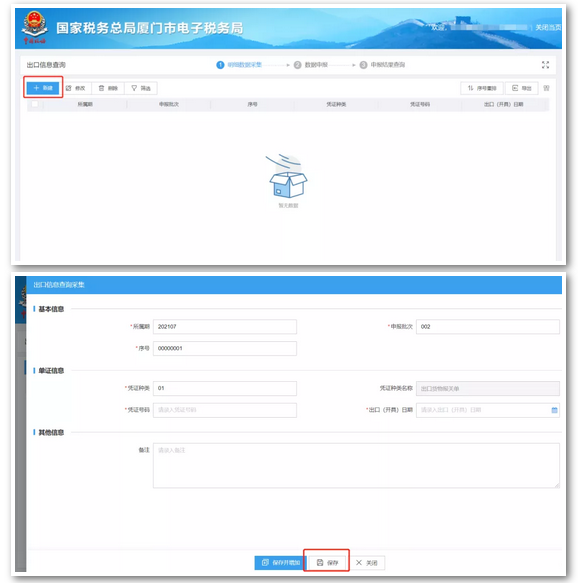 3、点击“新建”- 录入无电子信息的报关单及相关数据 - 保存,如下图: