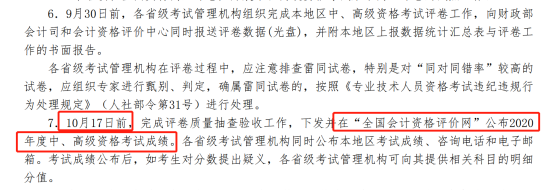 据官方公布的《关于2020年度全国会计专业技术中高级资格考试考务日程安排及有关事项的通知》可知,2020年中级会计职称考试成绩将会于10月17日前公布,具体内容如下所示: